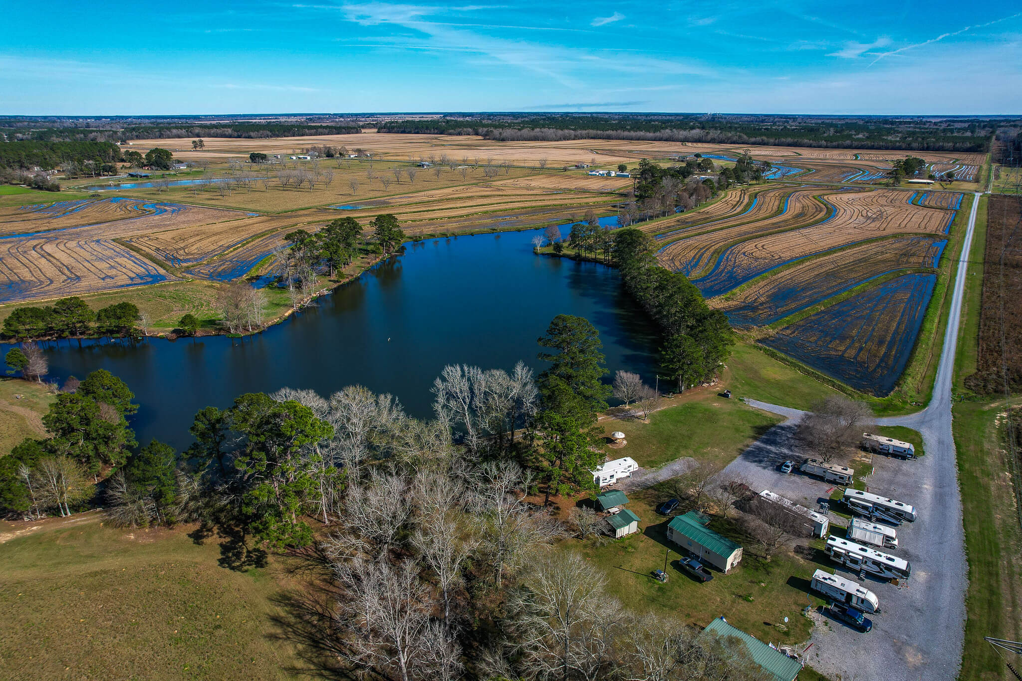 Located just 6 miles North of Iota and in between Eunice, Jennings, and Crowley, Louisiana, Lake Felix RV Park is a peaceful retreat where you can slow down and enjoy nature. Kick back and enjoy your stay at our RV sites just steps from the lake, where you can read, nap, pray, or simply sit back and listen to the birds sing and the wind rustle through the trees. Whether you’re here for a weekend visit or a longer stay, there’s plenty of room to unwind, fish, spend time with friends and family, or just take in the beautiful scenery.